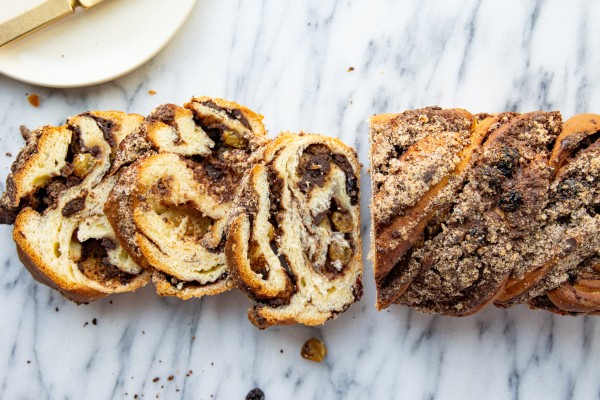 "In Ann Arbor, Michigan, the beloved deli and bakehouse Zingerman’s makes an updated take on classic babka. The layers consist of chocolate ganache, ground up chocolate brownie crumbs, and soaked raisins, and the loaves are crowned with a crunchy, cinnamon-sugar crumb."